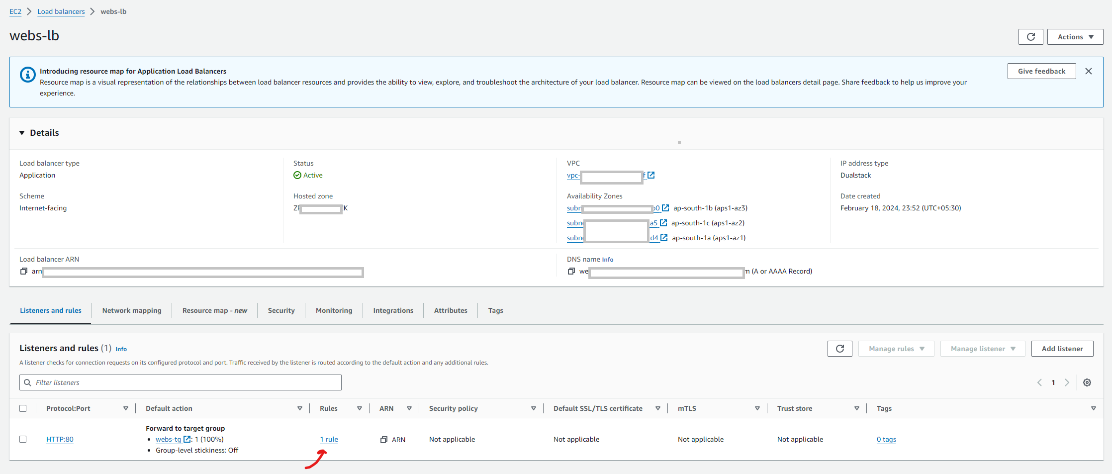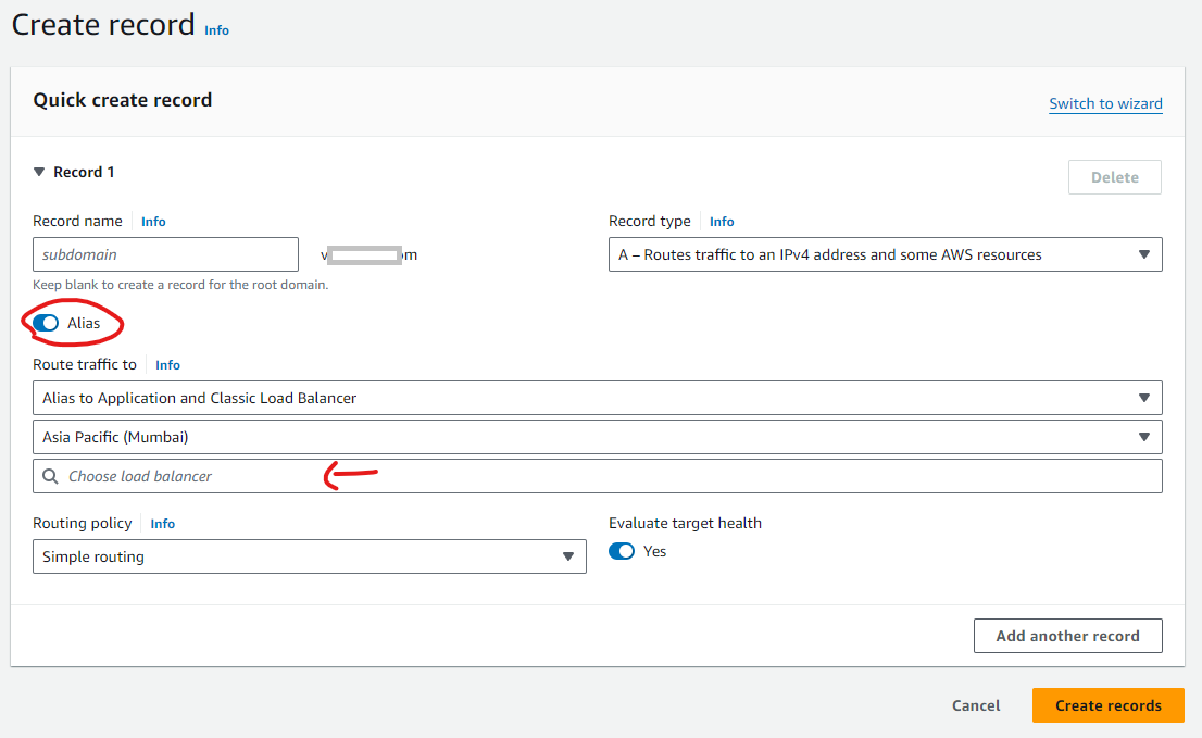 ***Note that one can create an alias A record to load balancer for routing traffic via domain name.***&#x20;