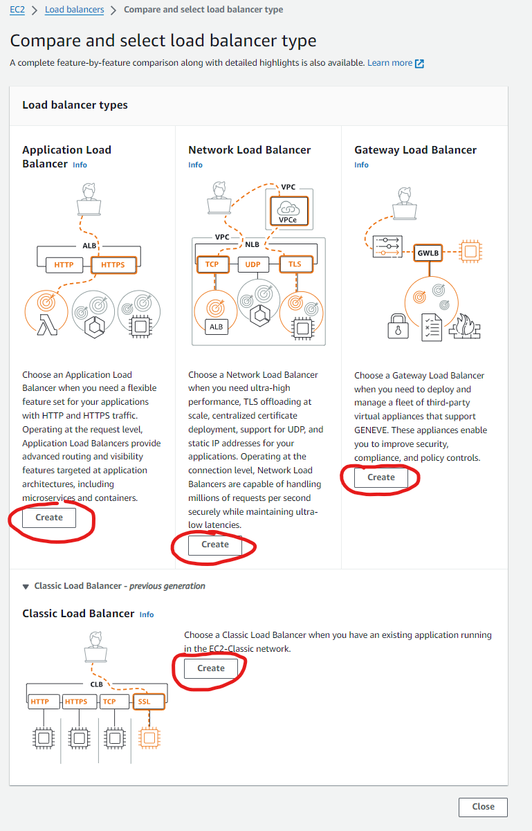 Now, let's see how one can find the creation page for a load balancer on AWS portal: