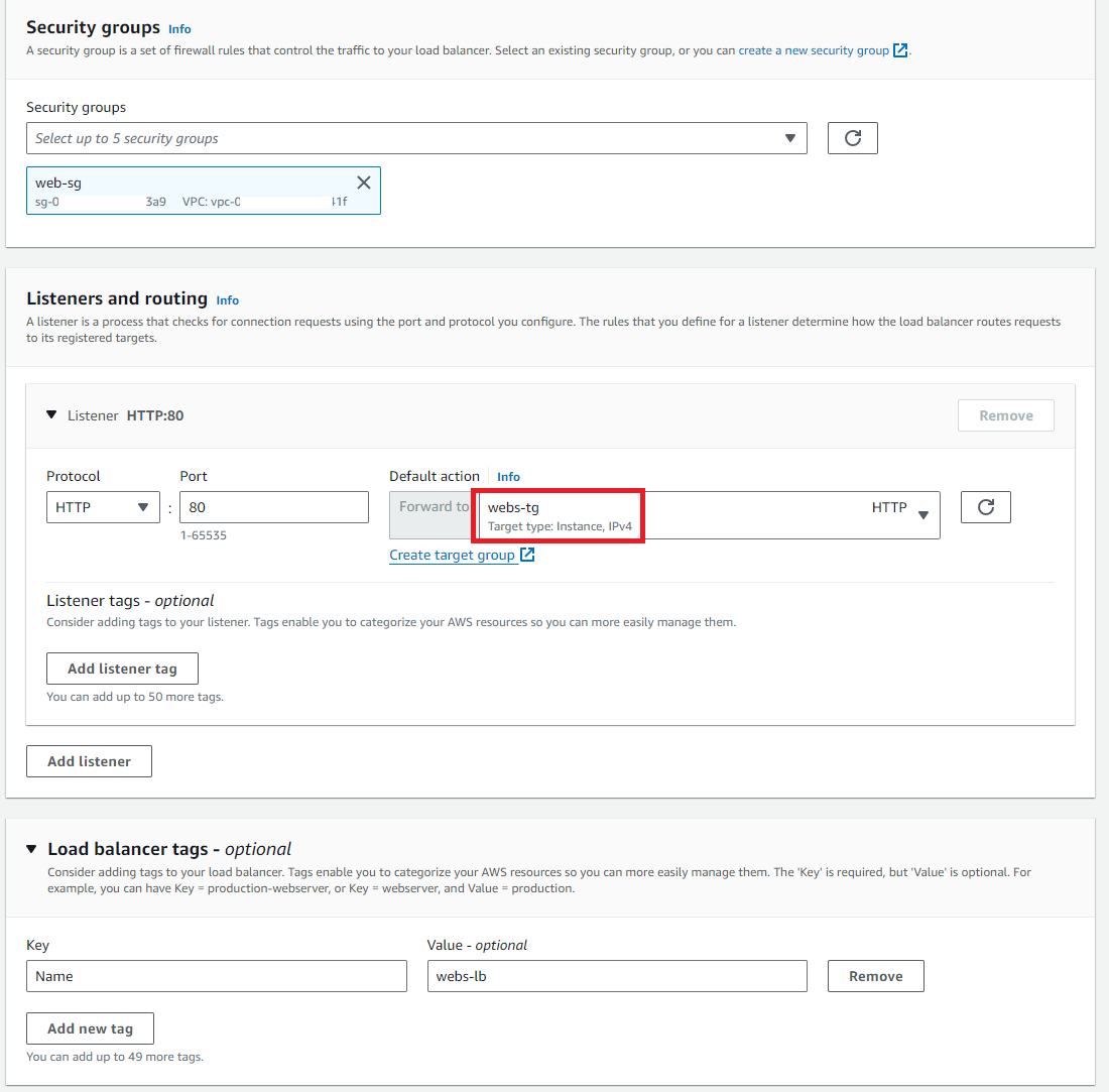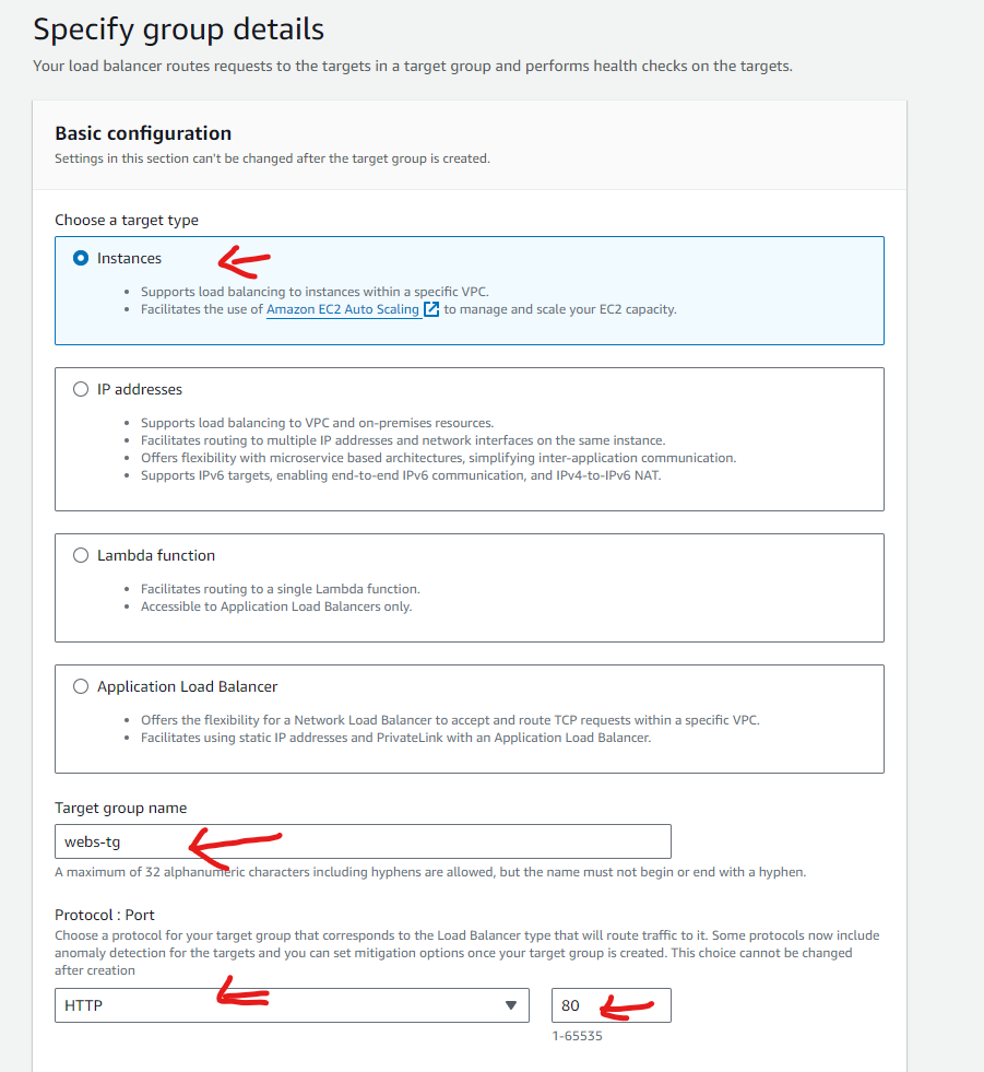 * Usually the recipient of the load balancer traffic is configured in form of target group.