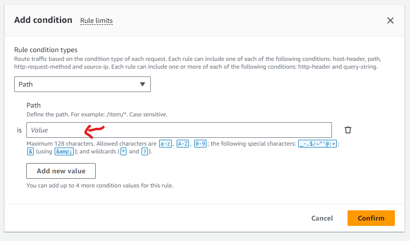 Now, if one wishes to do rule based routing, one can setup the rules accordingly. Example: There is one domain configured to a load balancer. The requirement is that when the path after the domain name is different in the URL, a different target group (of maybe the same target servers but the service is listening on different port number) should be reached out, so that the resource can be loaded accordingly. To do this, one can set the rules accordingly.